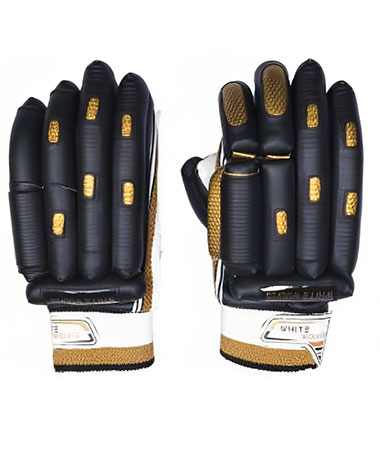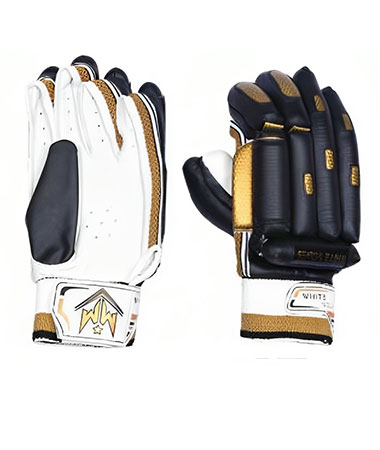 The White Wolves CLASSIC Dark Edition Batting Gloves are built for the batsman who demands style and substance. Featuring a bold combination of white, black, and aggressive gold accents, these gloves stand out without compromising safety. They utilize a multi-section design for superior flexibility and a contoured fit. The high-quality palm material ensures excellent grip and a comfortable feel, making them a fantastic choice for competitive cricketers seeking a premium aesthetic and reliable protection.