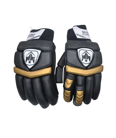 The White Wolves CLASSIC Dark Edition Batting Gloves are built for the batsman who demands style and substance. Featuring a bold combination of white, black, and aggressive gold accents, these gloves stand out without compromising safety. They utilize a multi-section design for superior flexibility and a contoured fit. The high-quality palm material ensures excellent grip and a comfortable feel, making them a fantastic choice for competitive cricketers seeking a premium aesthetic and reliable protection.